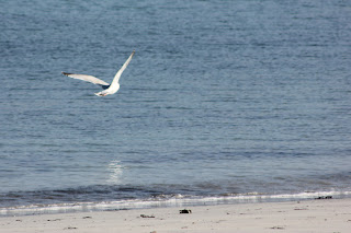 Ce matin, j'ai profité du beau temps pour faire une balade. Je suis allée sur la côte nord du cpoté de l'Aber Wrac'h. J'ai fini ma balade sur une joli petite plage. Du sable blanc, une mer transparente, le bruit des vagues et personne à part quelques mouettes... un vrai bonheur !